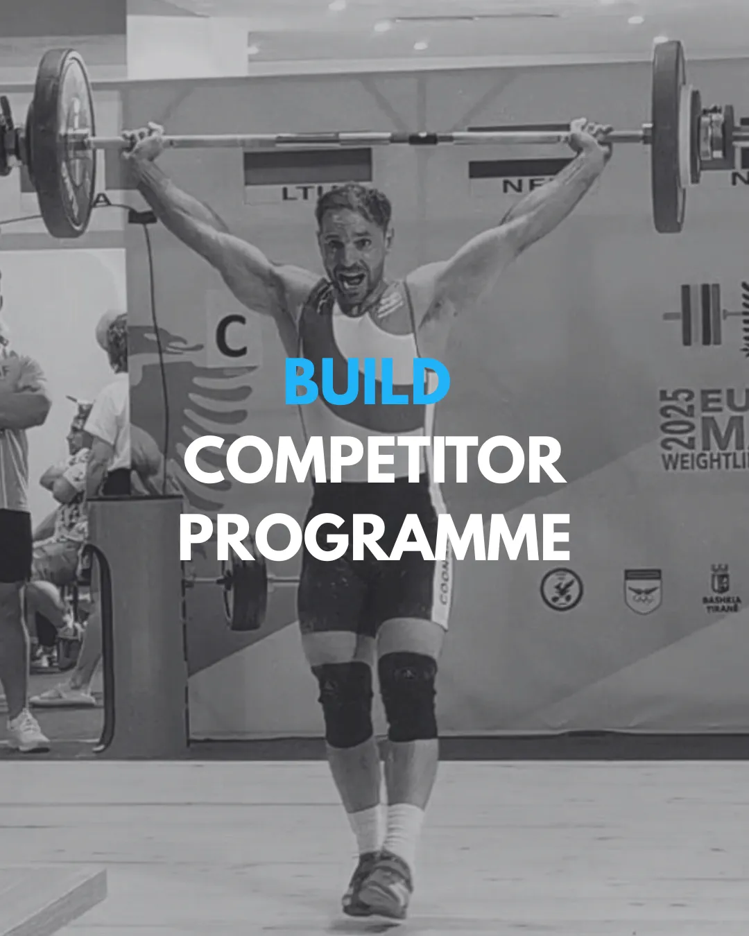 BUILD COMPETITOR combines competition-focused programming and human performance coaching to help you lift cleaner, move stronger, and compete with confidence. Perfect for lifters preparing for an upcoming meet, with weekly check-ins, personalised adjustments, and direct video/voice feedback. Includes a supportive team chat to keep you accountable and performing at your best. Build your technique, and elevate your performance on the platform.